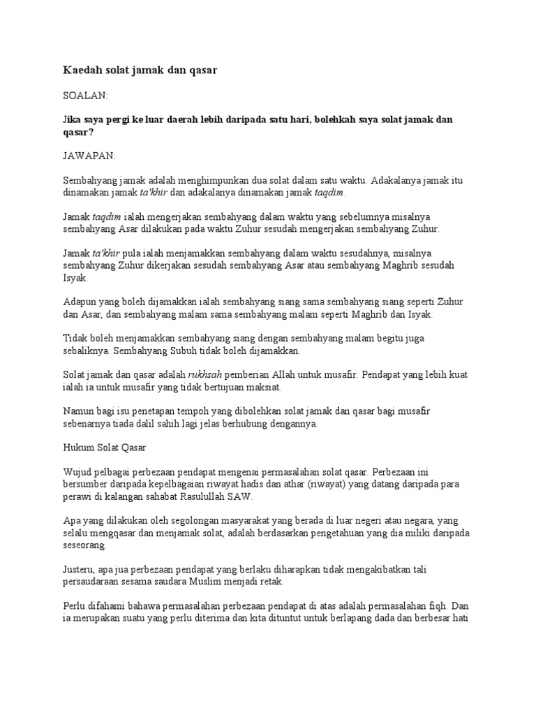 Kaedah Solat Jamak Dan Qasar Pdf